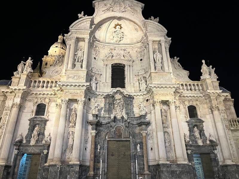 Op het centrale plein van Murcia staat de kathedraal met een 54 meter hoge barokke gevel, gebouwd tussen 1737 en 1751 door Jaime Bort y Meliá. De gevel combineert architectuur en beeldhouwkunst en symboliseert de geschiedenis van de Kerk en het bisdom.