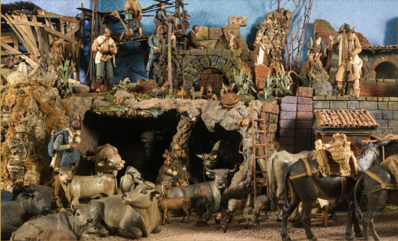 In tegenstelling tot de typisch Spaanse kerststal van Salzillo, draait deze meer om het seculiere leven, met de Napolitaanse bevolking in een stedelijke omgeving als hoofdrolspelers.