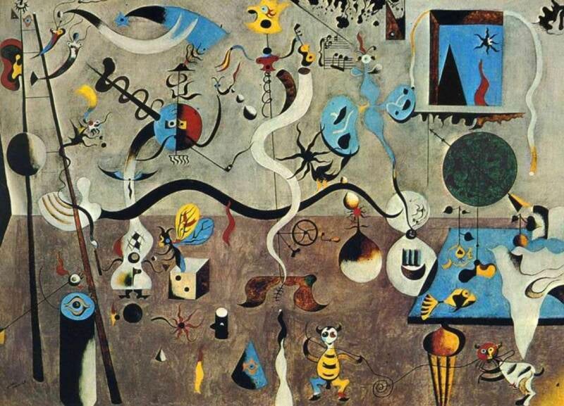 De geploegde aarde en Het Karnaval van de Harlekijn van Joan Miró, vertonen raakvlakken met De Tuin der lusten en De Hooiwagen van Hieronymus Bosch, zie hieronder.