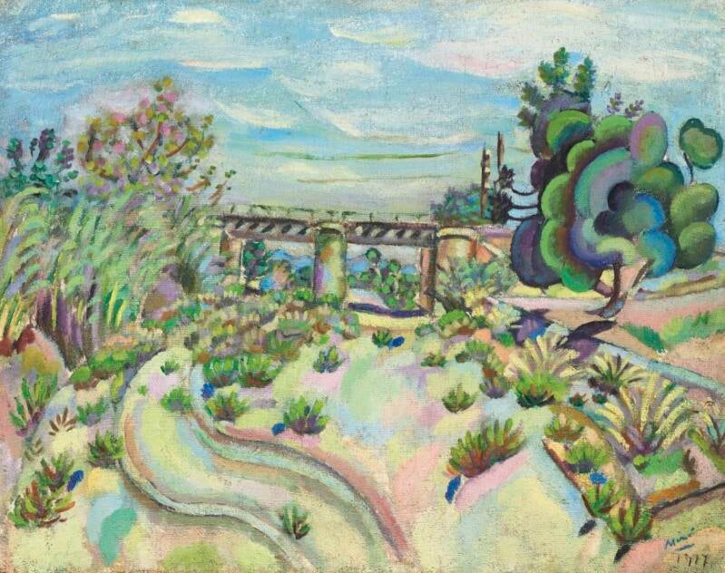 Dit schilderij is dan wel figuratief, maar het gebruik van kleuren en vormen heeft niets realistisch. Zeer sterk beïnvloed door Cézanne en de fauvisten, ontdoet hij hier de objecten en schaduwen van hun ware kleuren. De tinten zijn pastel en weerspiegelen de hitte van de zon en de droogte van de Catalaanse zomers.