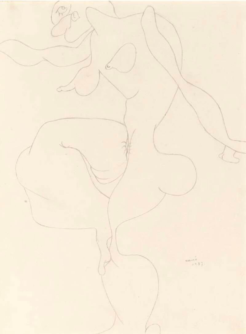 Miró tekende deze tijdens de lessen modeltekenen aan de Académie de la Grande Chaumière in Parijs, die hij in 1920 kortstondig had gefrequenteerd. Deze naakte 'figuren' in een niet te klasseren stijl fladderen tussen werkelijkheid en fantasie. Hun mismaakte lichamen lijken een weerspiegeling van de onzinnige werkelijkheid van het turbulente politieke landschap van die tijd; ze brengen tegenstrijdige gevoelens over van geweld, wanhoop en hulpeloos verdriet.